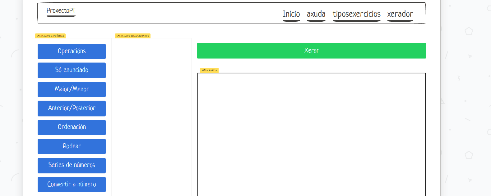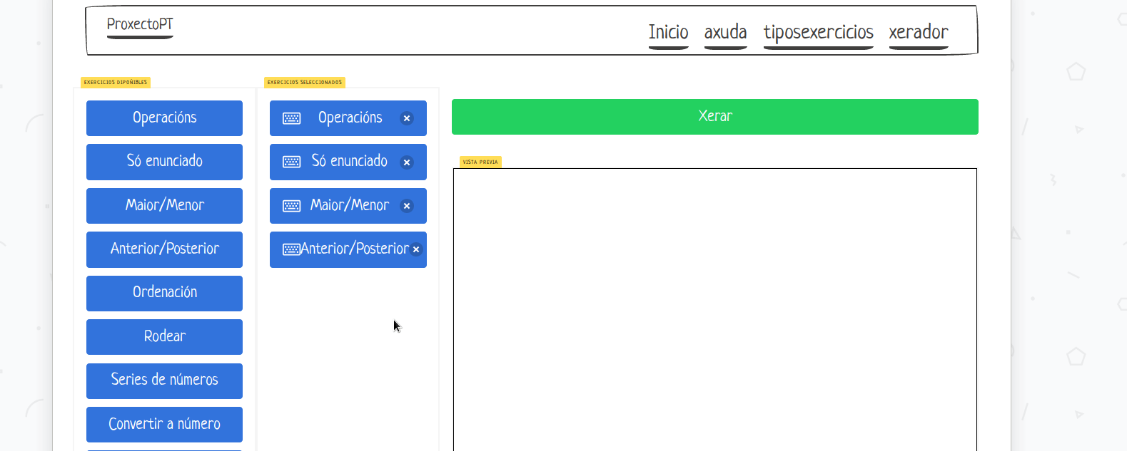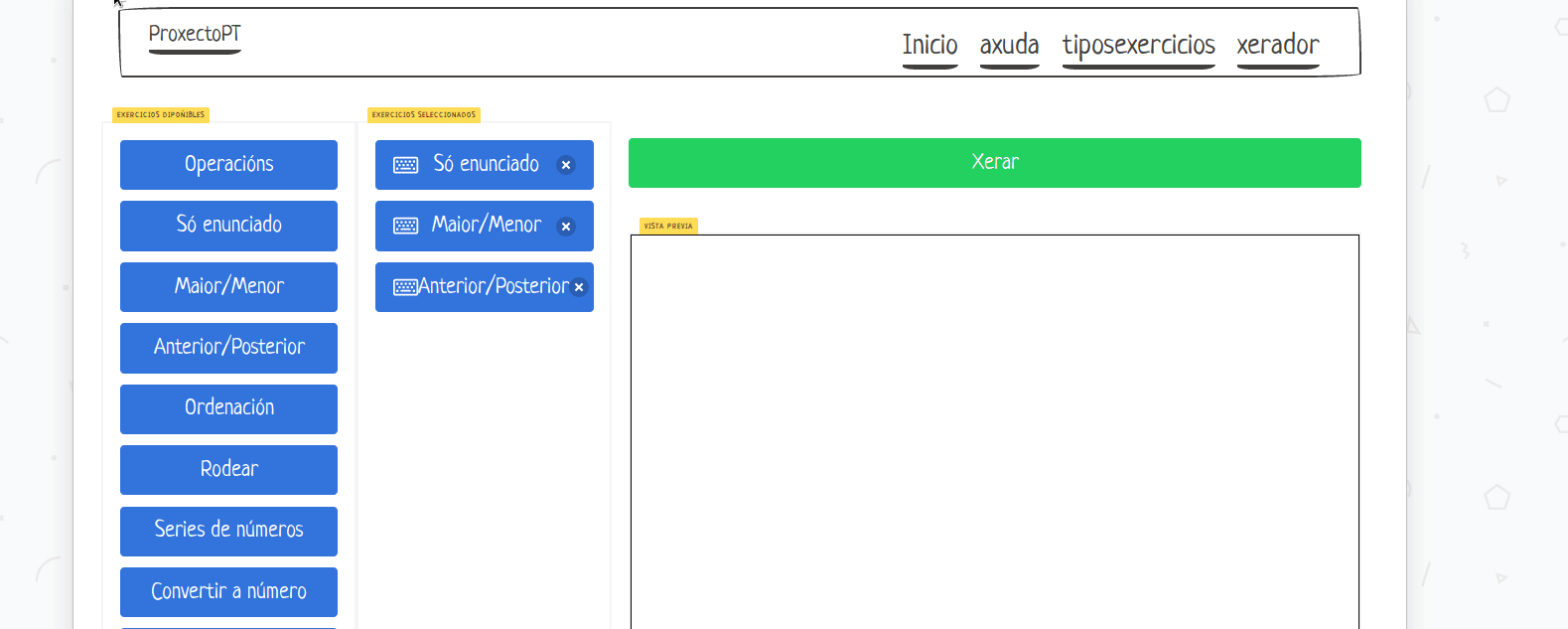 Na vista previa, se poderá ver como vai quedando a folla de exercicios que se está a confeccionar.