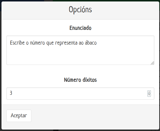 Este exercicio consiste en escribir en formato numérico o número representado nun ábaco.