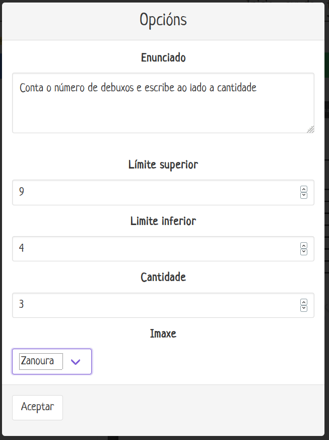 - Imaxe: a imaxe que se introducira nos cadros para contar.